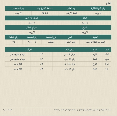 ▪︎ ارض ▪︎ رقم الارض 24 ▪︎ الحرف ب ▪︎ المساحة 805 م ▪︎ شارع 15 × 15 ▪︎ السعر 450,000 ريال ▪︎ رخصة فال 1200009258 موقع العقار