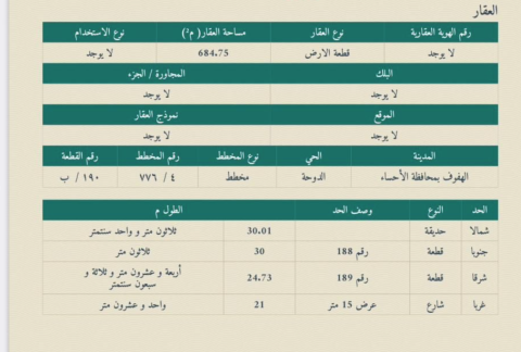 ▪︎ رقم الارض 190