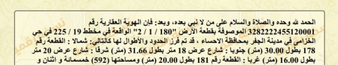 ▪︎ ارض ▪︎ رقم الارض 180 ▪︎ الحرف ج ▪︎ المساحة 592 م ▪︎ شارع 20 × 18 ▪︎ السعر 700,000 ريال ▪︎ رخصة فال 1200009258 موقع العقار