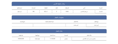 ▪︎ ارض ▪︎ رقم الارض 422-1 ▪︎ الحرف د ▪︎ المساحة 390 م ▪︎ شارع 15 غربًا ▪︎ على السوم ▪︎ رخصة فال 1200009258 موقع العقار