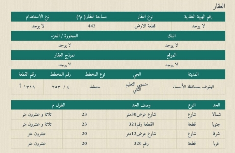 ▪︎ رقم الارض 319