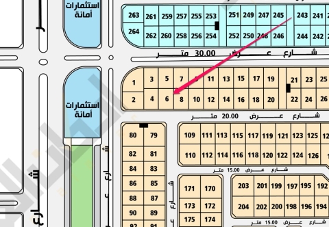 ▪︎ ارض ▪︎ رقم الارض 6 ▪︎ الحرف ش ▪︎ المساحة 735 م ▪︎ شارع 20 جنوبًا ▪︎ على السوم ▪︎ رخصة فال 1200009258 موقع العقار