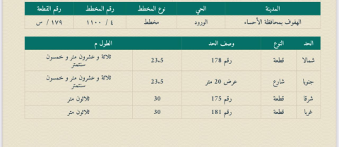 ▪︎ ارض ▪︎ رقم الارض 179 ▪︎ الحرف س ▪︎ المساحة 705 م ▪︎ شارع 20 جنوبًا ▪︎ السعر 420,000 ريال ▪︎ رخصة فال 1200009258 موقع العقار