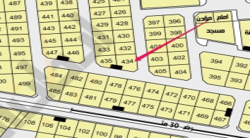 للبيع نصف ارض في الحي الاول بضاحية هجر رقم 434/أ المساحة 411م شارع 15 شرقًا السعر 300 الف