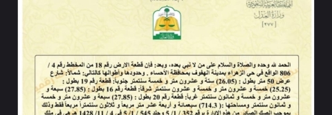 ▪︎ رقم الارض 18 ▪︎ المساحة 714 م ▪︎ شارع 50 شمالًا ▪︎ الأطوال والأبعاد 26 × 27 ▪︎ السعر 800,000 ريال ▪︎ رخصة فال 1200009258 320 views موقع العقار