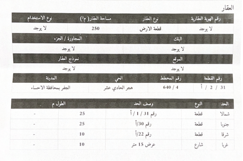 للبيع نصف ارض في حي التعاون بضاحية هجر رقم 31-1/أ المساحة 250م شارع 15 غربًا السعر 160 الف