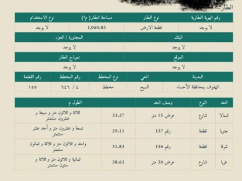 ▪︎ رقم الارض 155