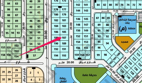 ▪︎ رقم الارض 187 ▪︎ الحرف م ▪︎ المساحة 360 م ▪︎ شارع 20 شرقاً ▪︎ السوم 245,000 ريال ▪︎ رخصة فال 1200009258 موقع العقار