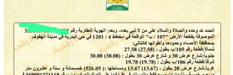 ▪︎ رقم الارض 107 ▪︎ الحرف ب ▪︎ المساحة 526 م ▪︎ شارع 30 × 20 ▪︎ السعر 550,000 ريال ▪︎ رخصة فال 1200009258 60 views موقع العقار