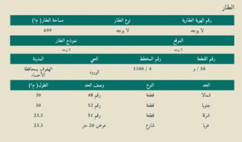 للبيع ارض في الورود الغربي رقم 50/و المساحة 699م شارع 20 غرباً السوم 500 الف