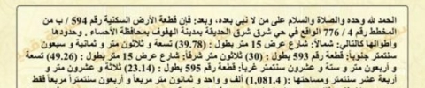 ▪︎ رقم الارض 594