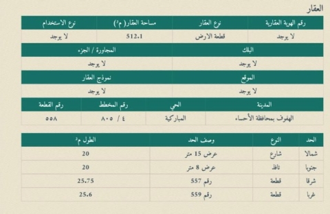 ▪︎ رقم الارض 558