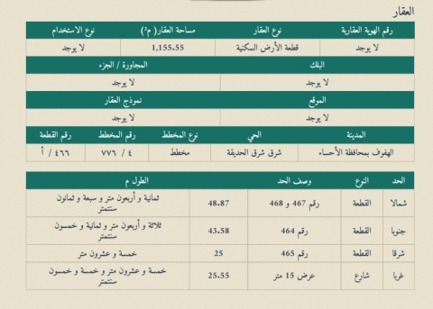 شمالًا: القطعة رقم 467 و 468 بطول 48.87م