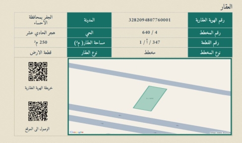 ▪︎ رقم الارض 347-1 ▪︎ الحرف أ ▪︎ المساحة 250 م ▪︎ شارع 30 / 15 ▪︎ السعر 175,000 ريال ▪︎ رخصة فال 1200009258 3 views موقع العقار