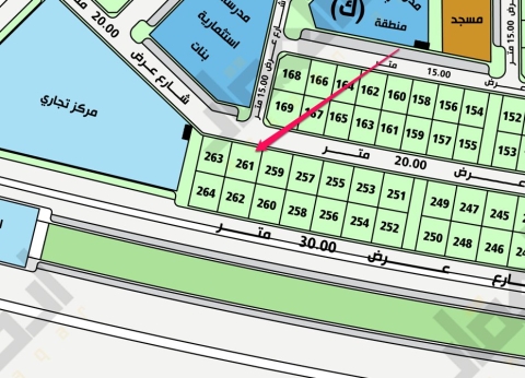 ▪︎ رقم الارض 261-1 ▪︎ الحرف ك ▪︎ المساحة 360 م ▪︎ شارع 20 شمالًا ▪︎ على السوم ▪︎ رخصة فال 1200009258 1 view موقع العقار