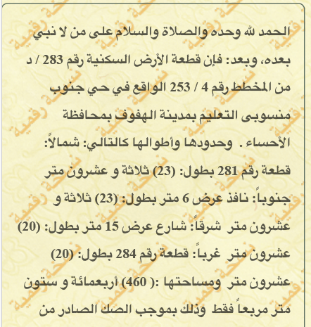 ▪︎ رقم الارض 283