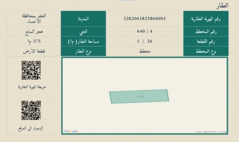 ▪︎ رقم الارض 26-1 ▪︎ الحرف ب ▪︎ المساحة 375 م ▪︎ شارع 15 غربًا ▪︎ السعر 220,000 ريال ▪︎ رخصة فال 1200009258 1 view موقع العقار