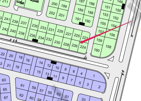 ▪︎ رقم الارض 226 ▪︎ الحرف ب ▪︎ المساحة 875 م ▪︎ شارع 40 جنوبًا ▪︎ السوم 800,000 ريال ▪︎ رخصة فال 1200009258 1 view موقع العقار