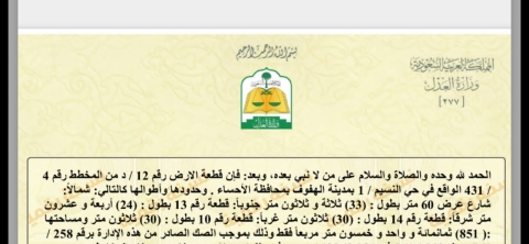 للبيع ارض تجارية في حي النسيم 1 رقم 12/د المساحة 851م شارع 60 شمالًا السوم 3850 للمتر