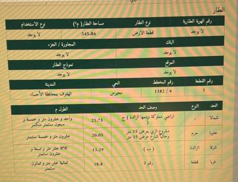 - مساحة الارض رقم 1 345م و سعرها 1600 للمتر