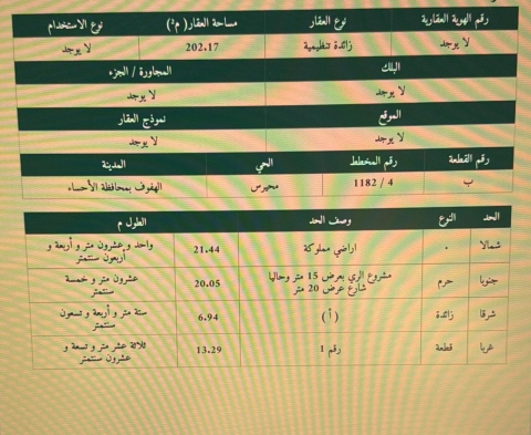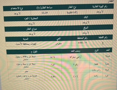 ▪︎ ملاحظات على العقار : الارض تتكون من قطعة رقم 1 و الزوائد