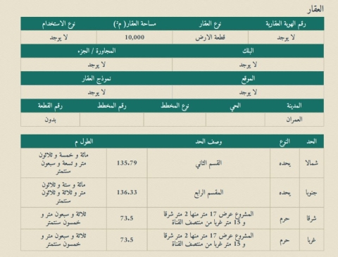 للبيع مزرعة صك في العمران بالقرب من بحيرة الاصفر المساحة 10000م السعر مليونين