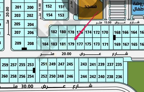 للبيع ارض في حي الورو الغربي رقم 179/س المساحة 705م شارع 20 جنوبًا السعر 420 الف