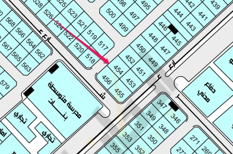 للبيع ارض في الحي الثامن بضاحية هجر رقم 454/ب المساحة 625م شارع 15 غربًا السوم 305 الف