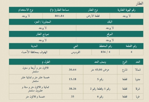 شرقًا: قطعة رقم 1 وقطعة رقم 2 بطول 38.26م