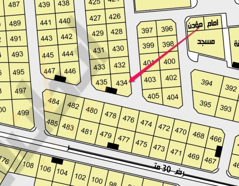 للبيع نصف ارض في الحي الاول بضاحية هجر رقم 434/أ المساحة 411م شارع 15 شرقًا السعر 300 الف