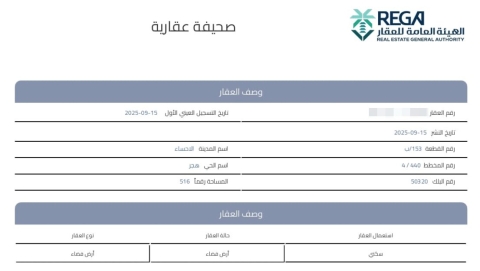 ▪︎ ملاحظات على العقار : يوجد تقرير مساحي للارض