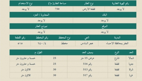 ▪︎ رقم الارض 515