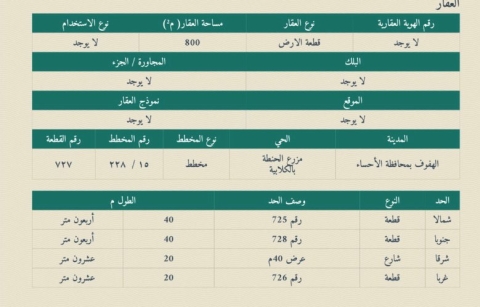 ▪︎ رقم الارض 727