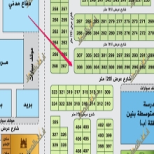 للبيع نصف ارض في الحي الاول بضاحية هجر رقم 377/ب المساحة 375م شارع 20 غربًا السعر 300 الف