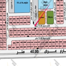 للبيع ارض في حي شرق شرق الحديقة رقم 163/ب المساحة 692م شارع 40 شرقًا السعر 900 المتر
