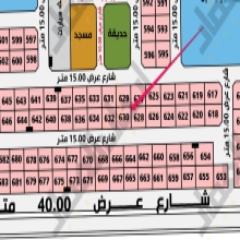 للبيع ارض في الحي الثامن بضاحية هجر رقم 675/ب المساحة 625م شارع 40 غربًا السعر 400 الف